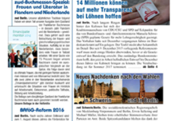 zwd Berlin. Nach langem Ringen hinter den Kulissen hat sich der Koalitionsausschuss von CDU/CSU und SPD auf Eckpunkte für das von Bundesfrauen- und -familienministerin Manuela Schwesig (SPD) geplante Gesetz für mehr Lohngerechtigkeit geeinigt. Das Vorhaben hatte seit Dezember vergangenen Jahres im Bundeskanzleramt auf Eis gelegen. Der Teufel steckt aber bekanntlich im Detail: Der seit 9. Dezember 2015 vorliegende Referentenentwurf muss noch einige Hürden überwinden, bevor er als Gesetzentwurf den Bundestag erreicht.