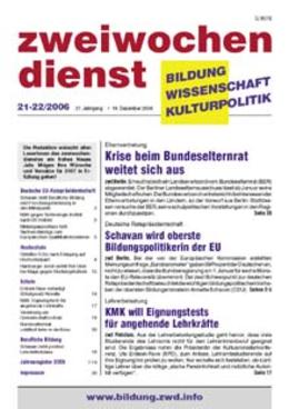Titelthema : Ausgabe 21-22/2006, 19. Dezember 2006 Krise beim Bundeselternrat weitet sich aus21. Jahrgang