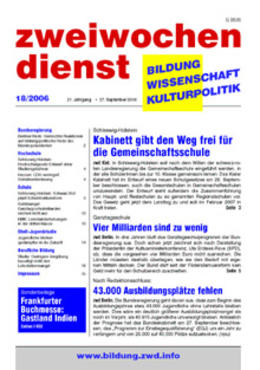 zwd-POLITIKMAGAZIN Nr. 321 : Rossmann: „Die Finanzierung von Bildung muss bis 2017 zum Gewinner werden“ Überblick über die Themenschwerpunkte der der aktuellen Ausgabe: BILDUNG & POLITIK | FRAUEN- UND GLEICHSTELLUNGSPOLITIK | KULTUR & POLITIK mehr...