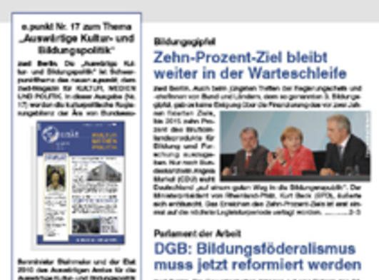 Die Auswärtigen Kultur- und Bildungspolitik ist Themenschwerpunkt des zwd-Magazin für Kultur, Medien & Politik, Ausgabe Nr. 17, Juni 2010 - (4. Jahrgang) mehr...