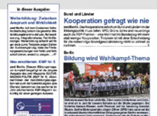 NEUE AUSGABE ZWD-BILDUNGSMAGAZIN 05-2011 ERSCHIENEN : Bund und Länder: Kooperation gefragt wie nie zwd Berlin. Lesen Sie in der neu erschienenen Ausgabe des zwd-Fachmagazins Bildung.Gesellschaft und Politik 5-2011: mehr...