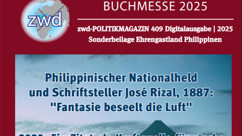 Das zwd-POLITIKMMAGAZIN 409 Digitalausgabe - Sonderbeilage zum Ehrengastland Philippinen der Frankfurter Buchmesse 2025 zum Download: Abonnent:innen können die Buchmessen-Beilage hier herunterladen.