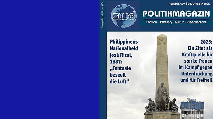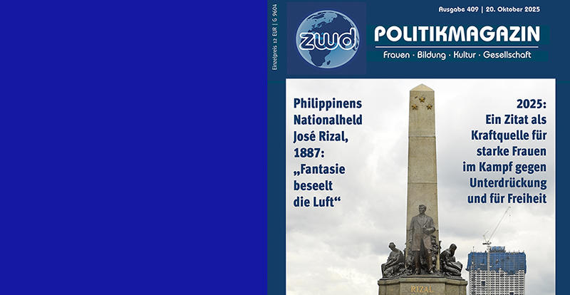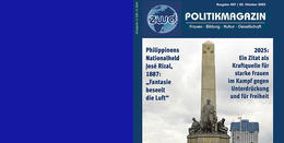 Wenn diese Ausgabe gedruckt und als pdf unsere Leserschaft erreicht, ist die Frankfurter Buchmesse 2025 schon wieder Geschichte. Mit unserer Berichterstattung über Ehrengastländer der Buchmesse ist es uns seit vielen Jahren wichtig, bildungs-, frauen- und gleichstellungspolitische Themen zu beleuchten. Das gilt auch für den diesjährigen Ehrengast Philippinen, der ein Zitat seines Nationalhelden José Rizal als Motto gewählt hatte; Fantasie beseelt die Luft“. Es steht als Anspruch und Kraftquelle für den Kampf starker Frauen, auch Autorinnen, gegen Unterdrückung und für Freiheit. Unsere Fragestellung will nicht nur den Blick auf das Gastland schärfen, sondern ebenso hinterfragen, welche Erfahrungen und Lernprozesse sich daraus für uns eröffnen können. mehr...