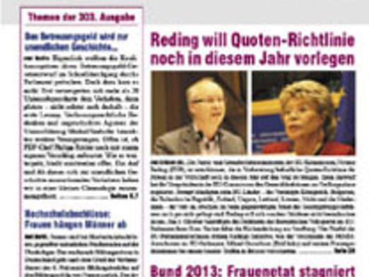 Neue Ausgabe erschienen: ZWD-FRAUENMAGAZIN 303 : Reding will Quoten-Richtlinie noch in diesem Jahr vorlegen 21. April 4800 mehr...