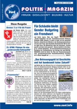 zwd Berlin (ig/sv).Ist Gender Budgeting in dieser Legislaturperiode ein Thema für die Bundespolitik? Das zwd-POLITIKMAGAZIN hat in seiner neuen Ausgabe dazu drei Fragen an das Bundesfinanzministerium gerichtet und auch die SprecherInnen der Bundestagsfraktionen befragt. Zudem berichten wir ausführlich in unserem Themenschwerpunkt über Fragen und Beispiele einer geschlechtergerechten Haushaltsaufstellung.