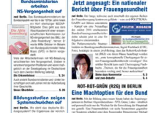 Die Parlamentarische Staatssekretärin im Bundesgesundheitsministerium, Ingrid Fischbach (CDU), bestätigte in einem zwd-Beitrag, dass das Robert-Koch-Institut (RKI) von ihrem Hause beauftragt worden sei, „erste konzeptionelle Überlegungen für einen Frauengesundheitsbericht vorzulegen“.