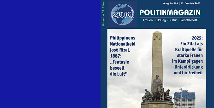 Wenn diese Ausgabe gedruckt und als pdf unsere ­Leserschaft erreicht, ist die Frankfurter Buchmesse 2025 schon wieder Geschichte. Mit unserer Berichterstattung über Ehrengastländer der Buchmesse ist es uns seit vielen Jahren wichtig, bildungs-, frauen- und gleichstellungspolitische Themen zu beleuchten. Das gilt auch für den diesjährigen Ehrengast Philippinen, der ein Zitat seines Nationalhelden José Rizal als Motto gewählt hatte; Fantasie beseelt die Luft“. Es steht als Anspruch und Kraftquelle für den Kampf starker Frauen, auch Autorinnen, gegen Unterdrückung und für Freiheit. Unsere Fragestellung will nicht nur den Blick auf das Gastland schärfen, sondern ebenso hinterfragen, welche Erfahrungen und Lernprozesse sich daraus für uns eröffnen können.